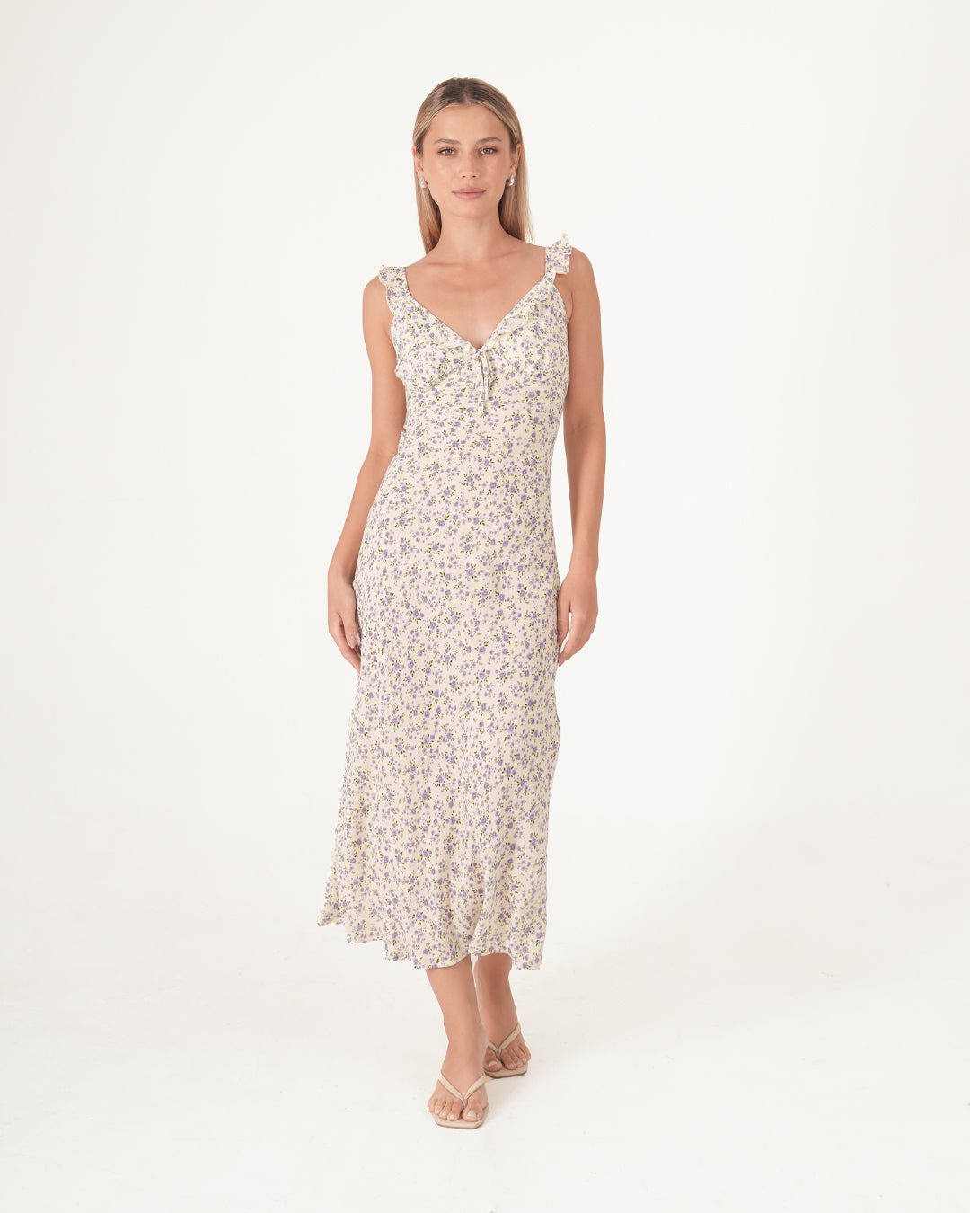 Danish Midi Dress in Sofia Flower is perfect for sunny brunches, seaside strolls, and tropical garden parties. Flirty frills and a sweetheart neckline bring playful elegance, keeping your island getaway style effortlessly chic.