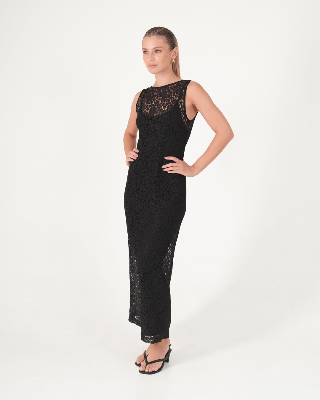 A dress made to turn heads – the Farah Lace Midi Dress blends sultry lace with refined elegance.