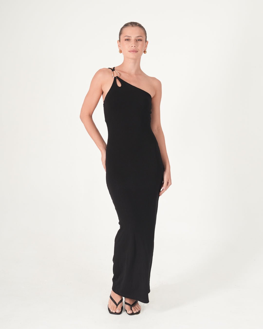 Kaia Midi Dress in Black is perfect for island evenings, rooftop bars, and sunset dinners. Its chic one-shoulder silhouette and flowing side slit let you move with confidence, making every tropical night effortlessly stylish and unforgettable.