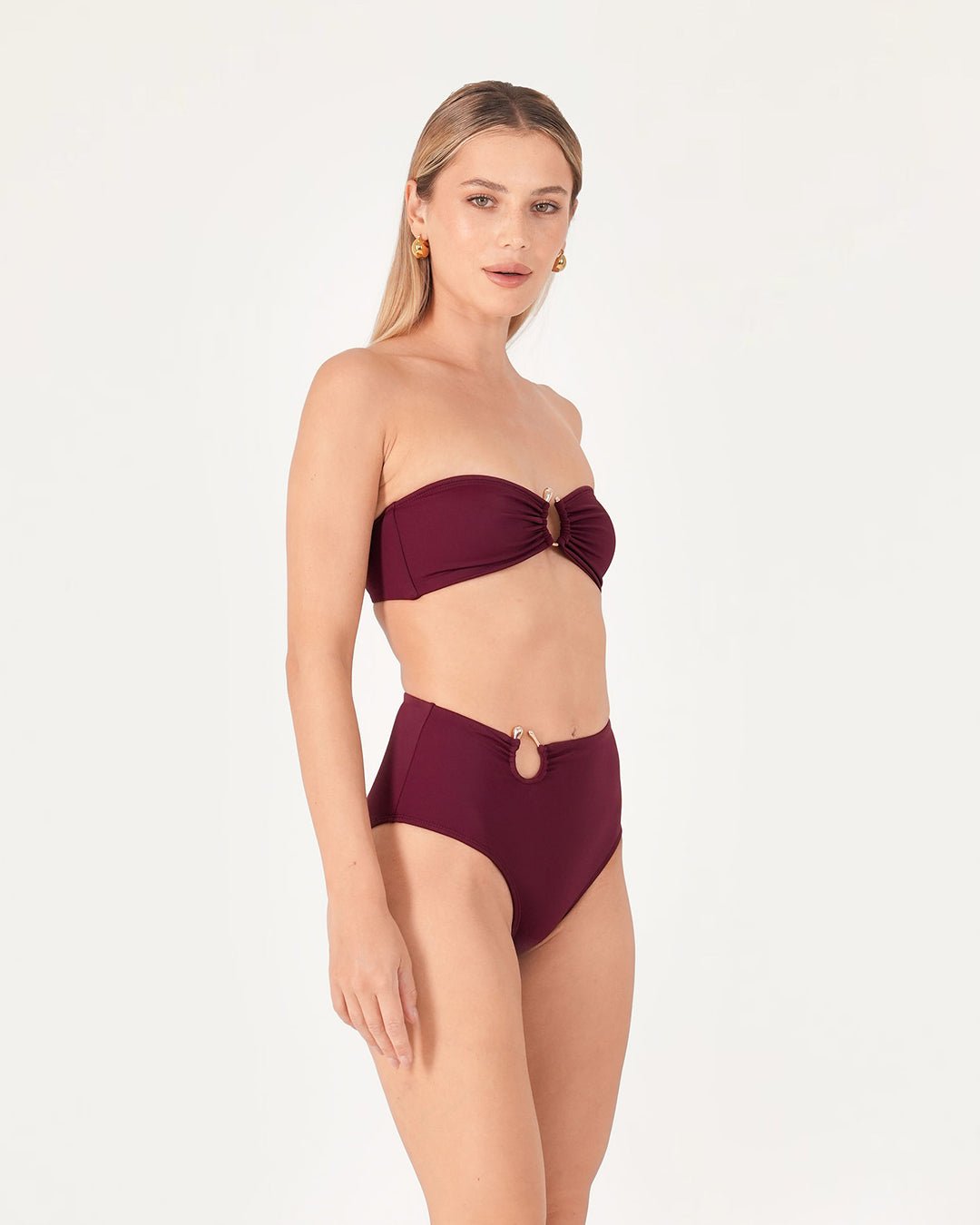 Sun-soaked and chic, the Petunia Bandeau Bikini Top in wine features a strapless fit with luxe gold detail—designed for poolside lounging, Bali getaways, and endless mix-and-match moments.