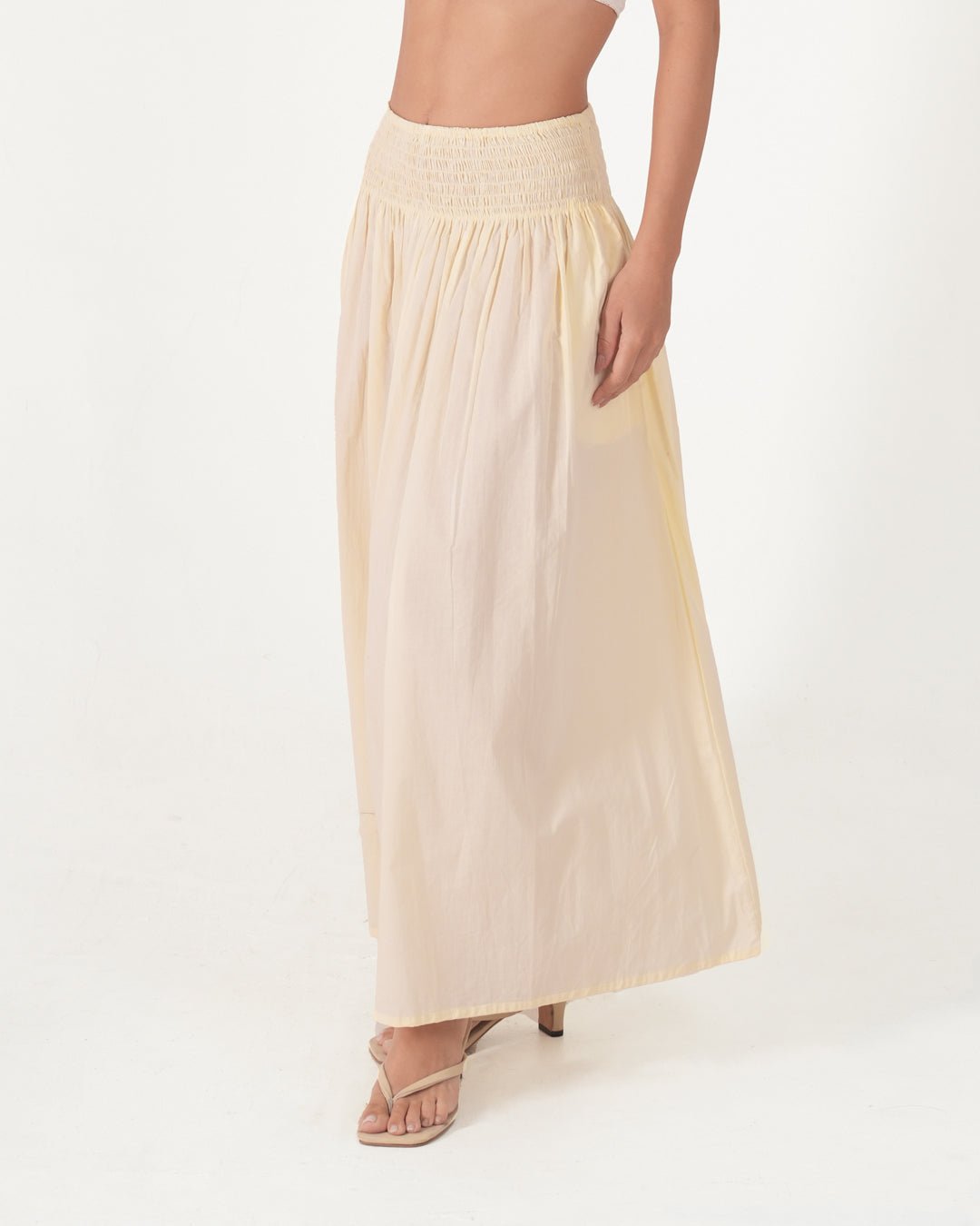 Clean and classic, this women’s poplin maxi skirt is equal measures cool and comfortable. Featuring elasticated shirred waist, this still can be worn high or low on the waist making it super versatile for work to play. We love it paired back with our signature jersey pieces or style it with bikini top for a true Bali vibe.