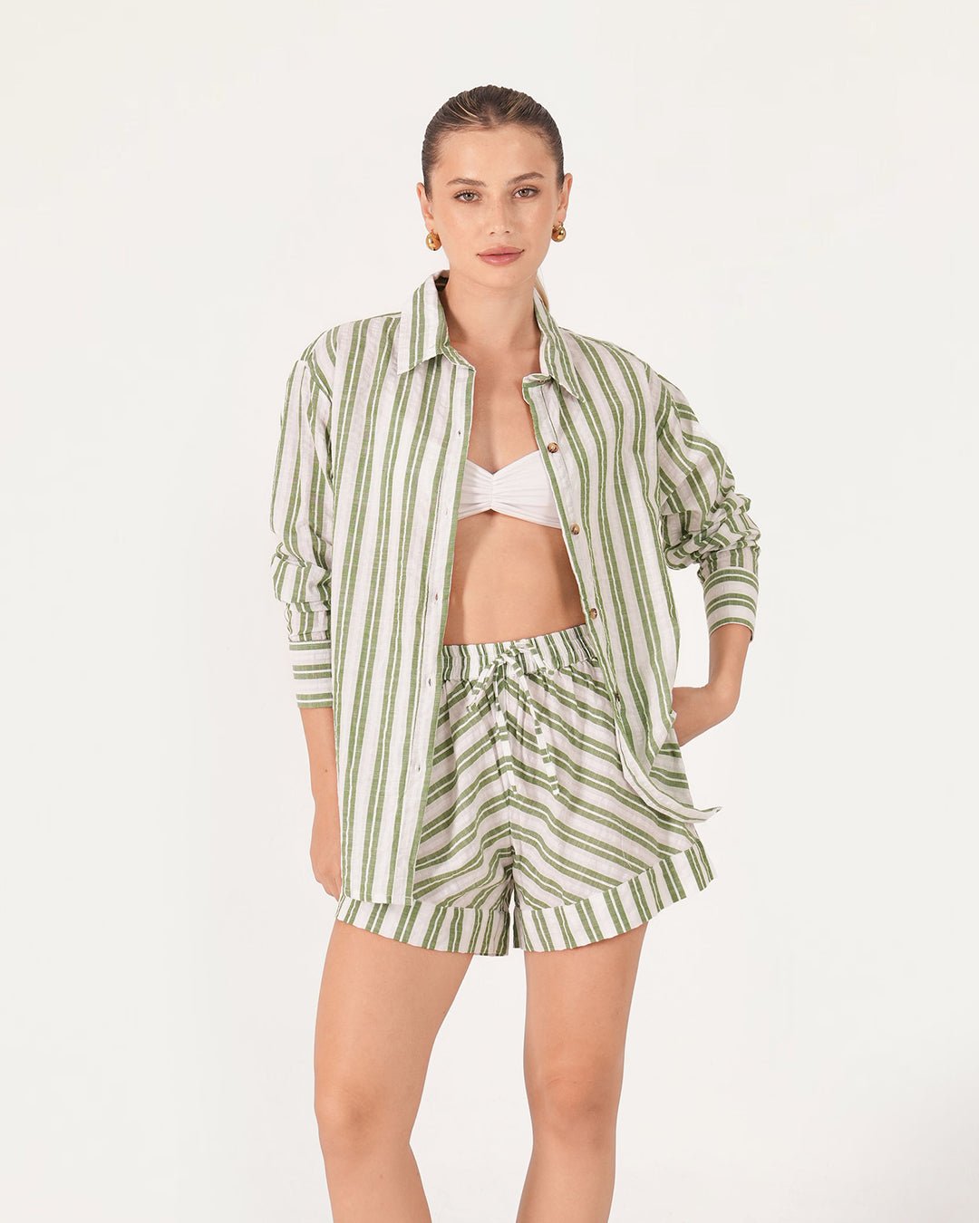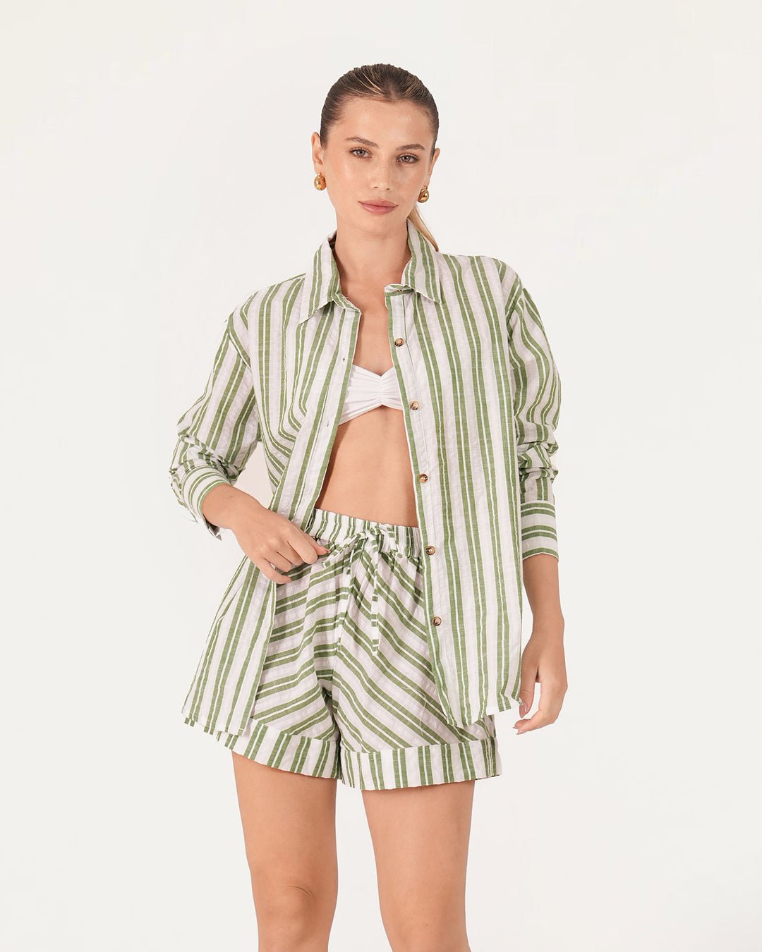 Keep it casual in the Shiloh Shirt—pinstripe green, breathable, and lightweight, perfect for beach cover-ups, brunch dates, or strolling Bali streets. This women’s oversized shirt is ideal back with matching shorts for the ultimate casual stripe set.